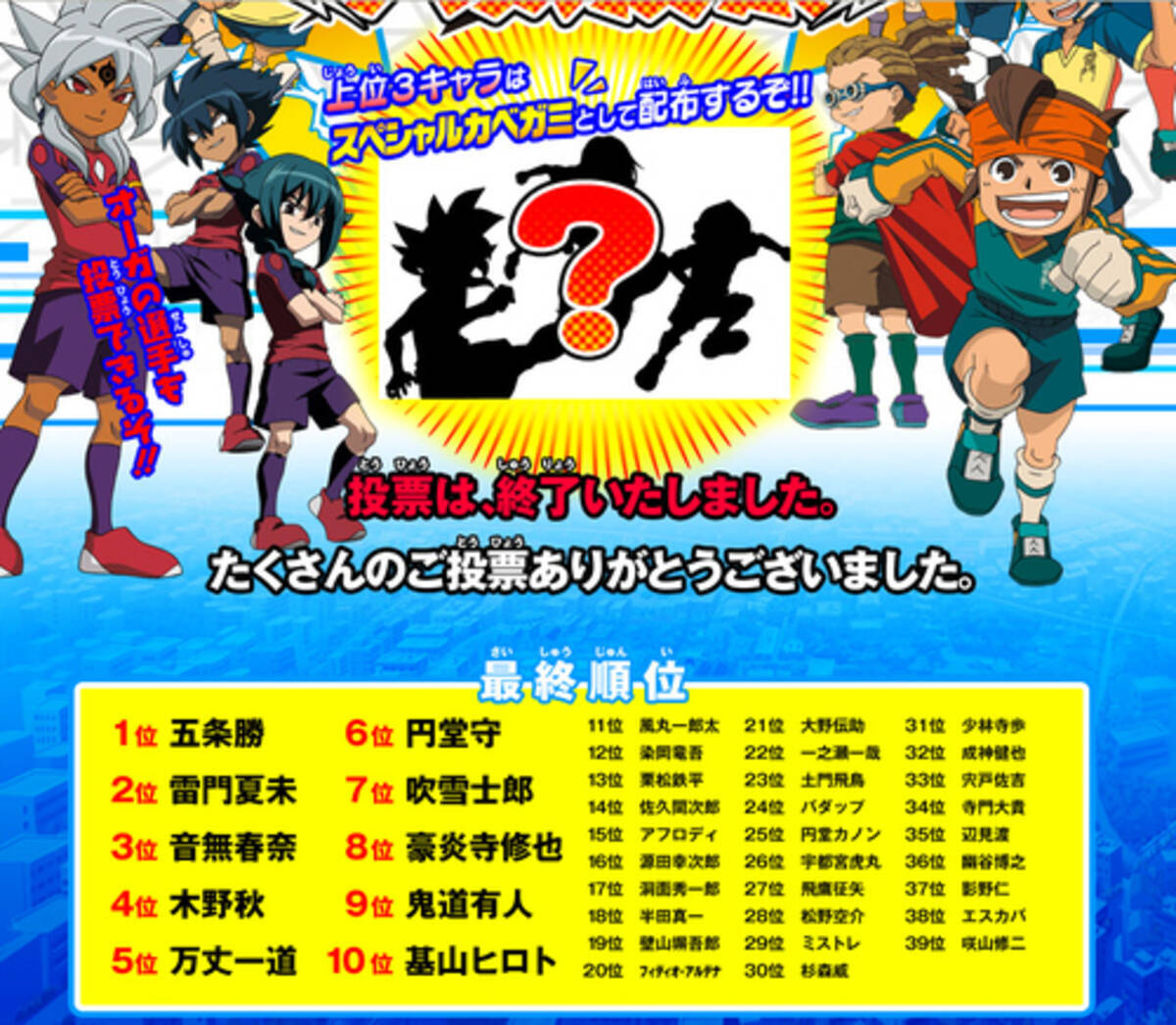 イナズマイレブン 人気投票の結果が発表された 1位は結局どのキャラに 10年12月23日 エキサイトニュース